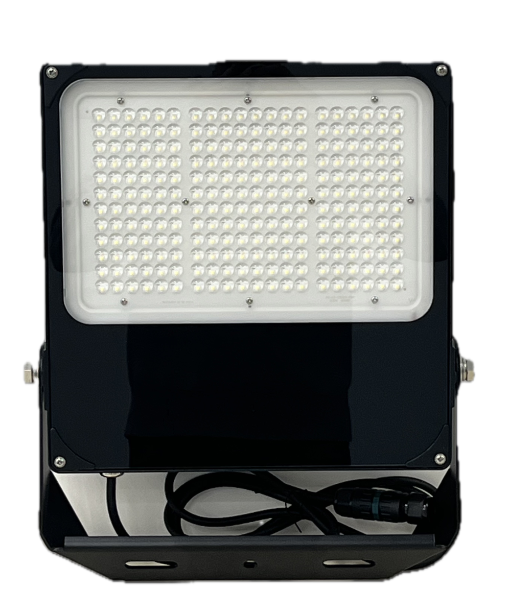 Éclairage de chantier compact et puissant : projecteur LED 200 W, livré avec accessoires pour une installation rapide et sécurisée. Compatible avec support projecteur.